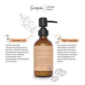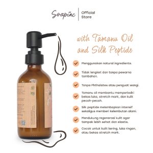 Tamanu oil bekerja merangsang regenerasi sel kulit baru, efektif membantu menyamarkan bekas luka dan stretch mark, sekaligus melembapkan serta menenangkan kulit kering dan pecah-pecah.